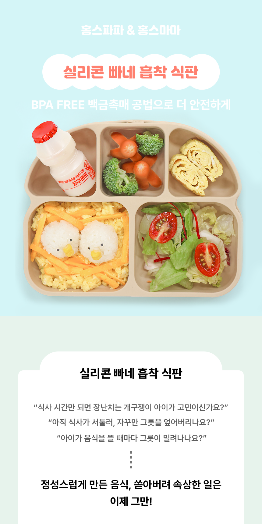 홍스파파 실리콘 빠네 흡착식판 - 5구 식판